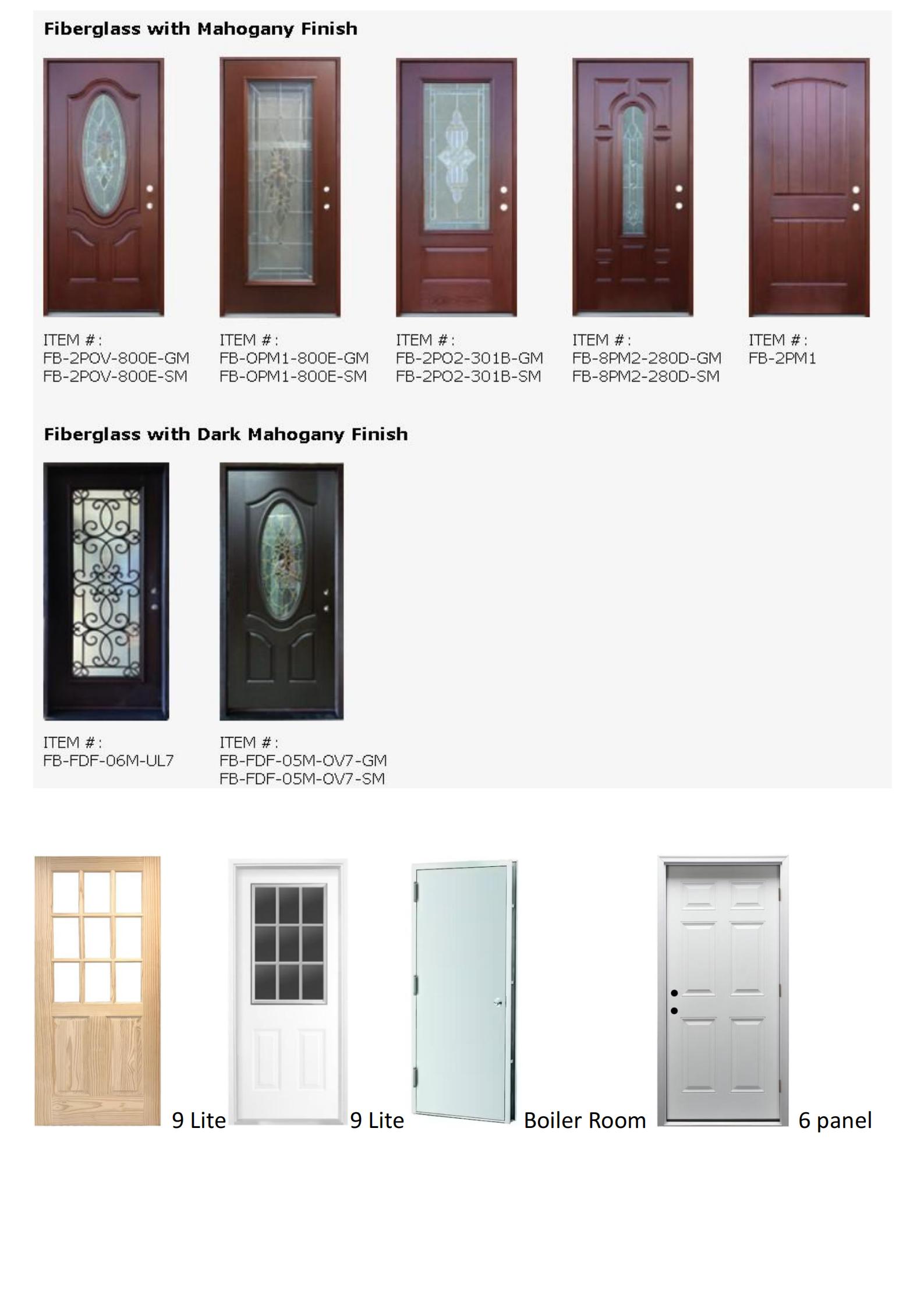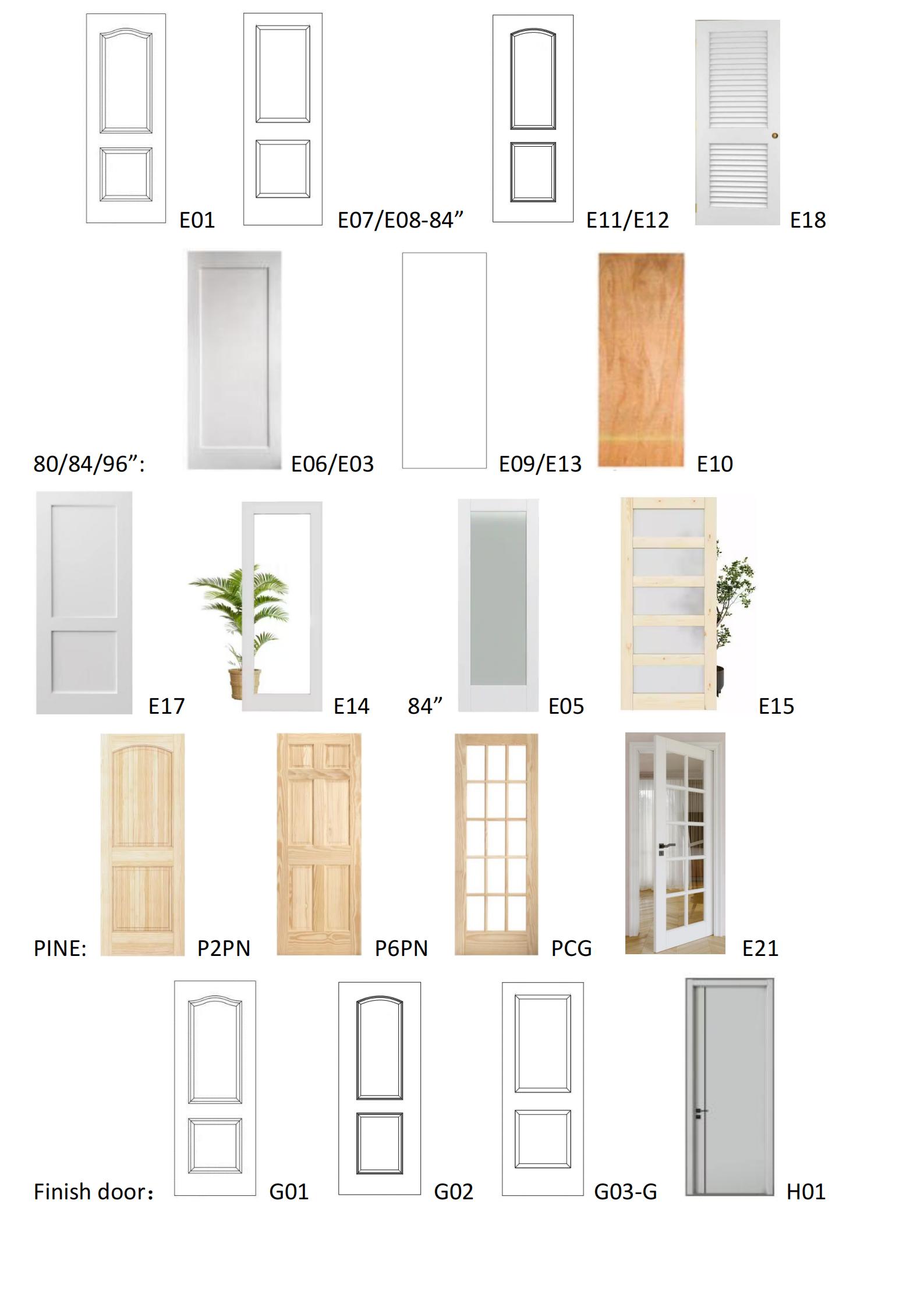 二楼门类展厅:展出10多个系列的室内木门,宽度从12”到36”,高度从80”到96”,有两格,单格,平面,玻璃木门,空心门,实心门,衣柜门,阳台门,及订做的PRE HUNG带框门。